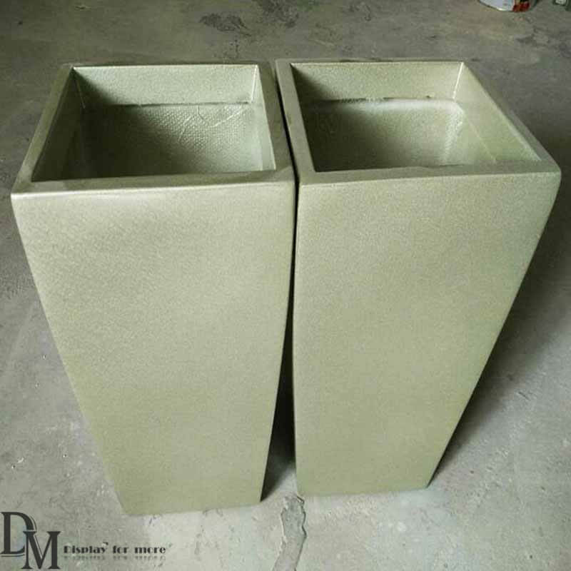 This tall plant pots series are made of hardness fiberglass material, what can keep same quality for around 8years outside and 10years inside. It is cube top and bottom parts, around 110cm height with plant sponge inside. The paint is high quality car paints and baking inside machine.